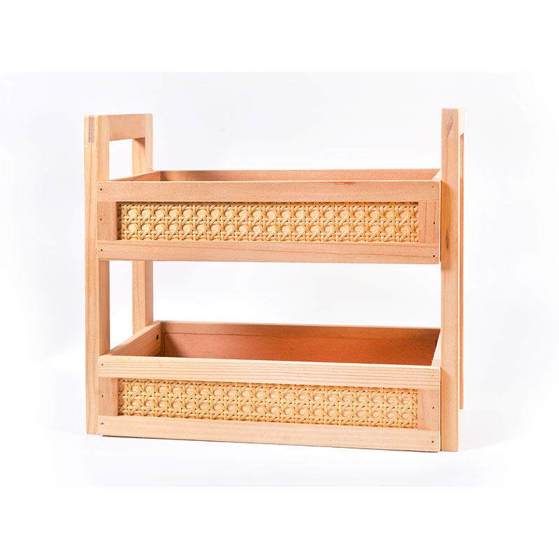 松木&フェイク籐 2段収納ラック