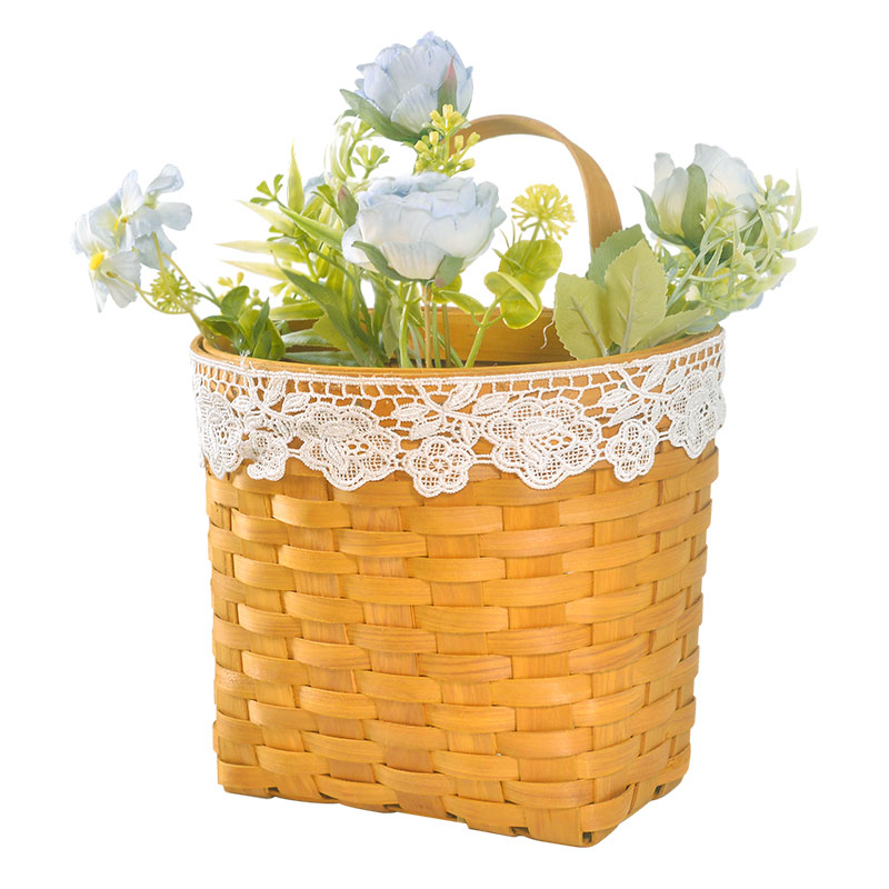 角型 木のスライス フリル付き壁掛けかご